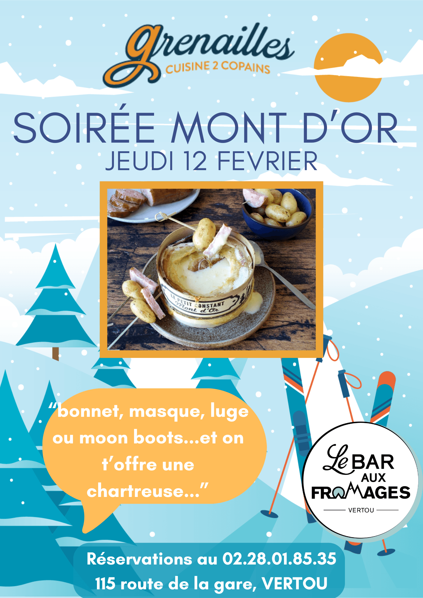 Mais alors, pourquoi Grenailles ? Notre nom résume à lui seul notre philosophie culinaire : la simplicité et la gourmandise. Un menu qui évolue tous les deux mois pour te garantir des produits frais et des plats adaptés aux saisons. Amoureux de notre région, nous avons fait le choix de travailler avec des producteurs locaux, aussi passionnés que nous.